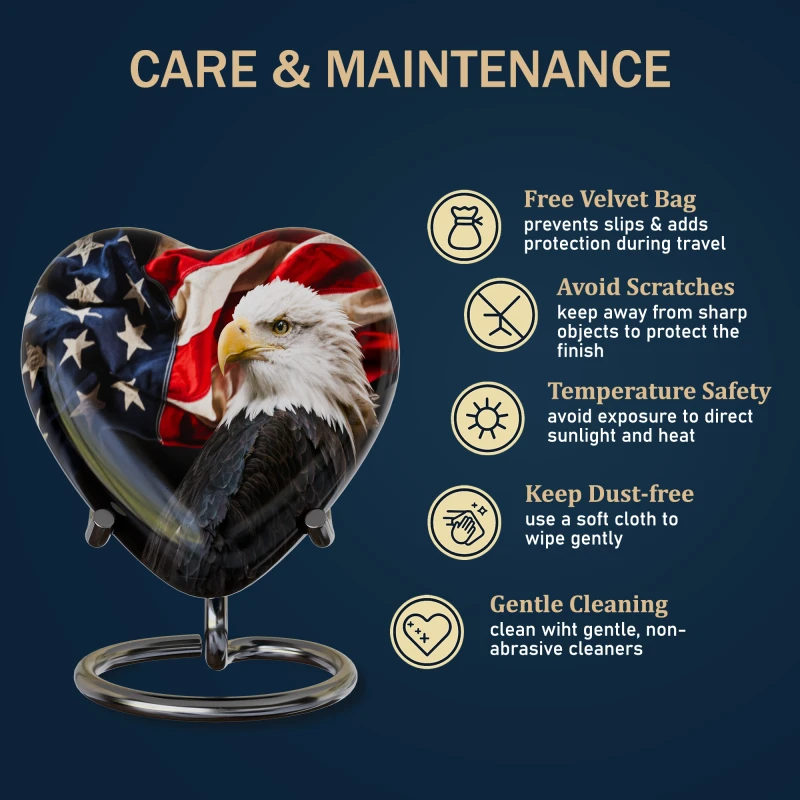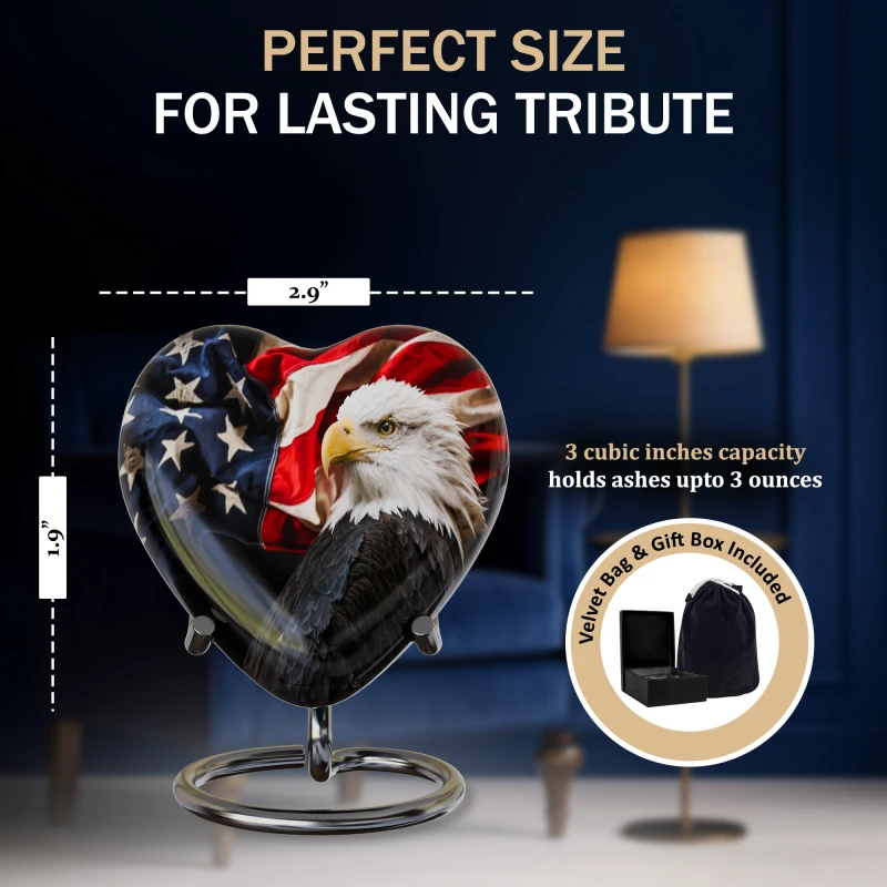 A beautiful symbol of remembrance, strength, and freedom. Designed for those who wish to keep a small portion of their loved one’s ashes close. Made from high-grade aluminum, it offers lasting durability and a polished finish. The secure threaded lid ensures ashes remain safely sealed, while the soft velvet bag adds an elegant touch of care. Every urn is custom-made by skilled artisans, and can be personalized with engraved names, transforming it into a meaningful keepsake. The embodies the harmony between nature’s beauty and eternal remembrance.
