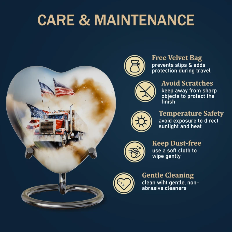 The Heart Keepsake Cremation Urn offers a peaceful and elegant way to cherish your loved one’s memory. Designed in a soothing orange sunset and palm tree theme, this small heart urn symbolizes calm, connection, and eternal love. Handcrafted from rust-free metal, it ensures long-lasting durability with a secure threaded lid to safely hold ashes. The set includes a stainless steel display stand, velvet pouch, and premium gift box — making it a complete tribute package suitable for any home memorial or sharing ashes among family.