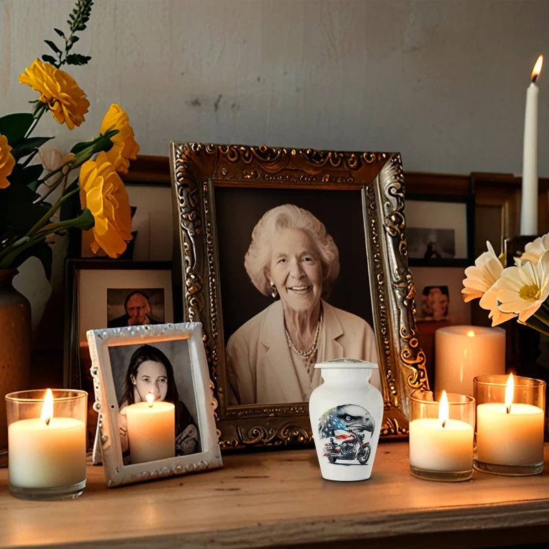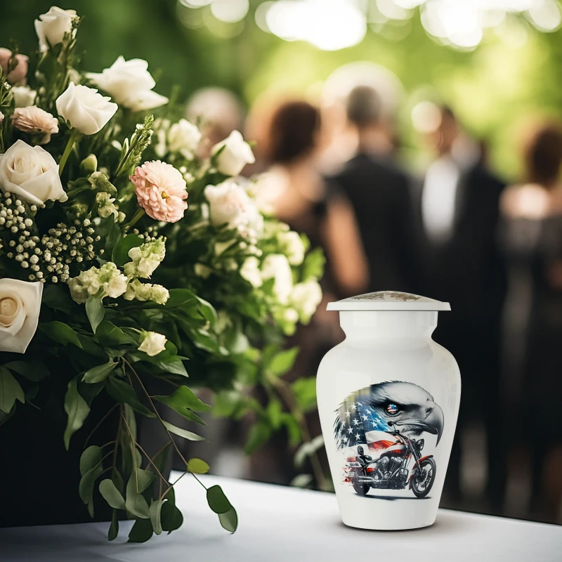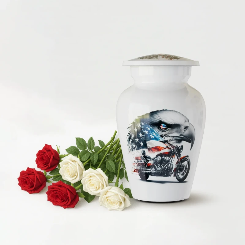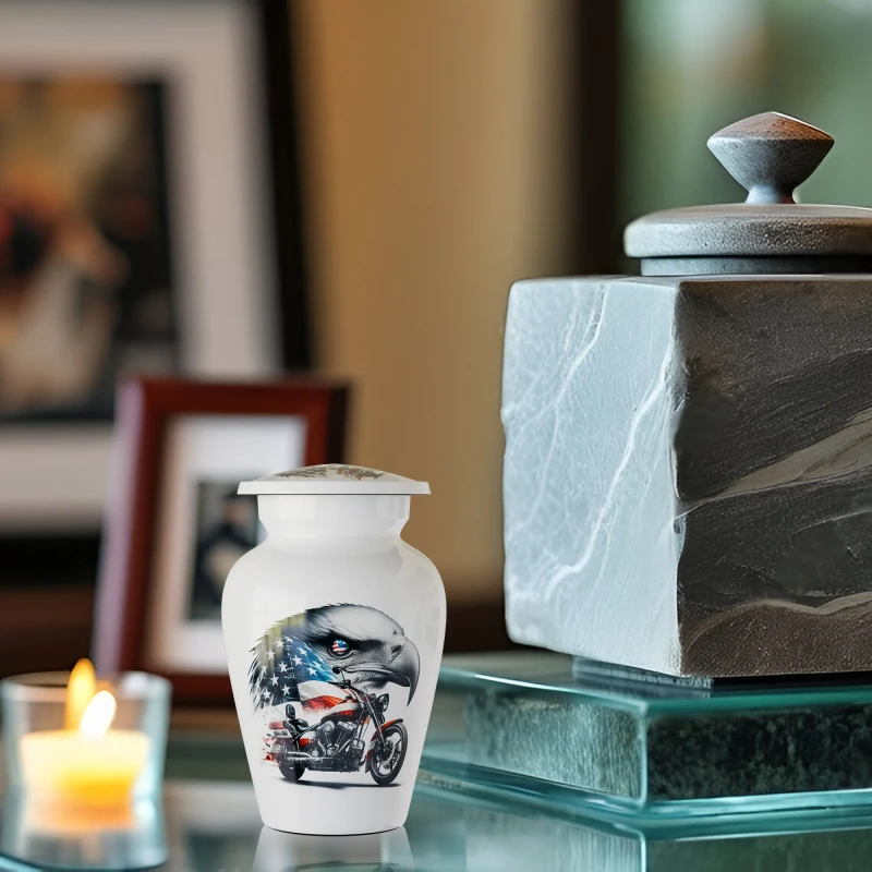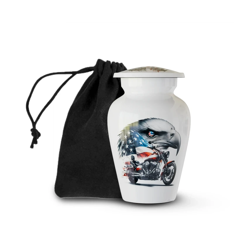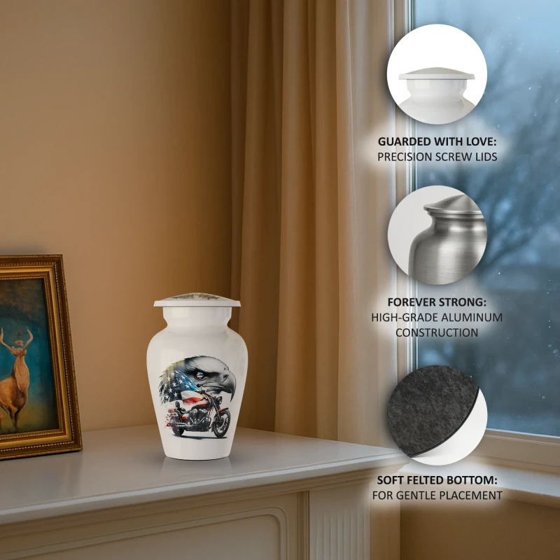 Eagle and Motorcycle Keepsake Urn | Mini Aluminum Cremation Urn
