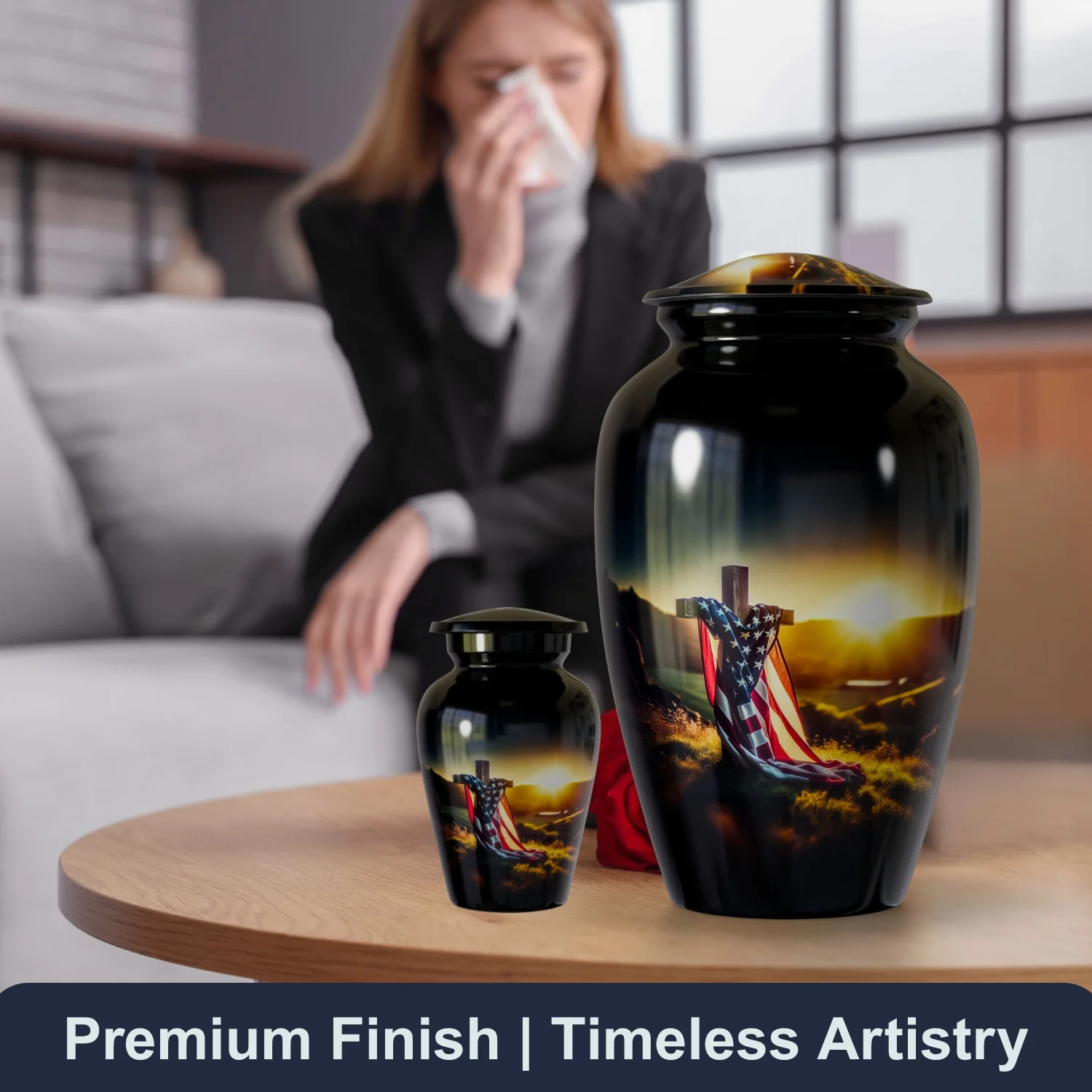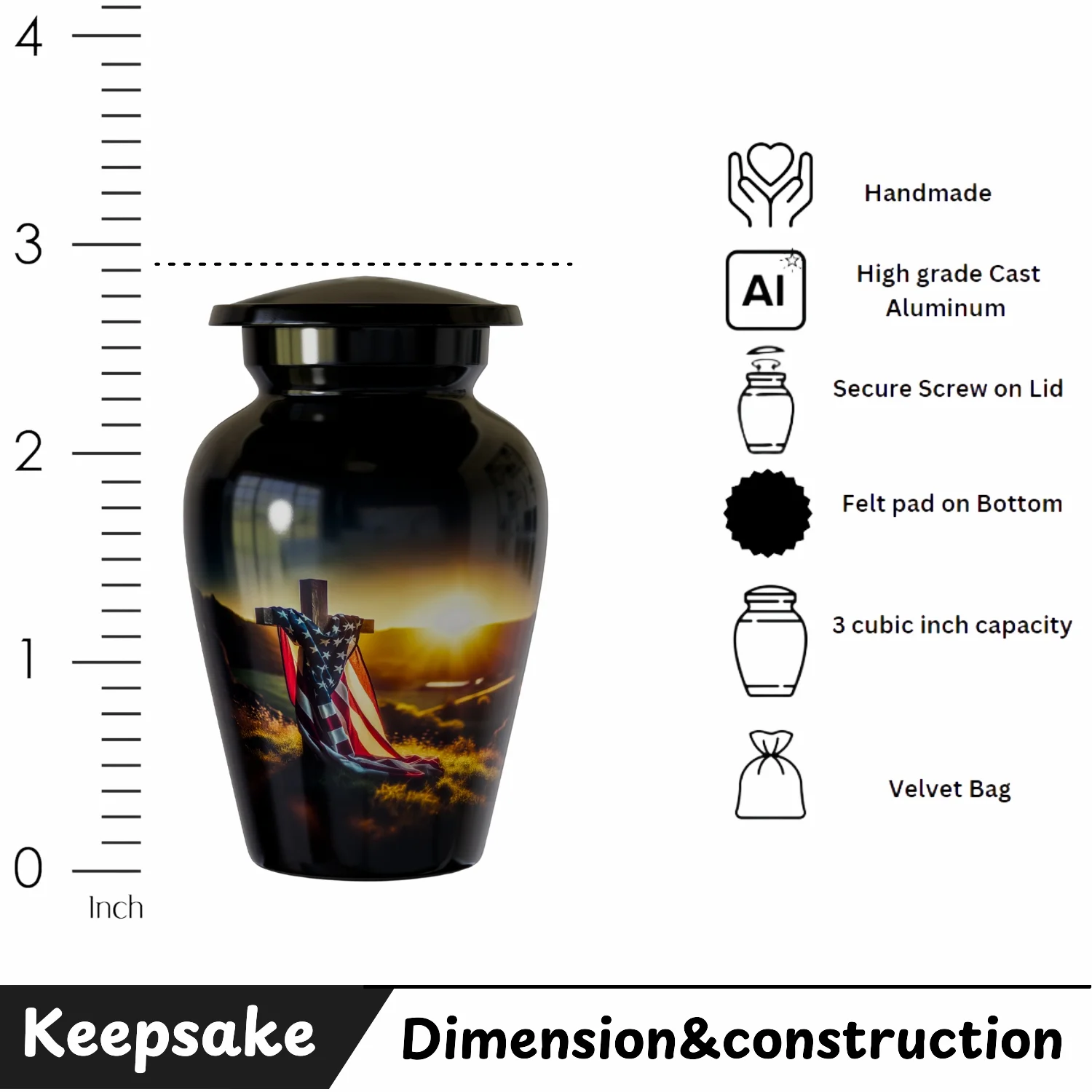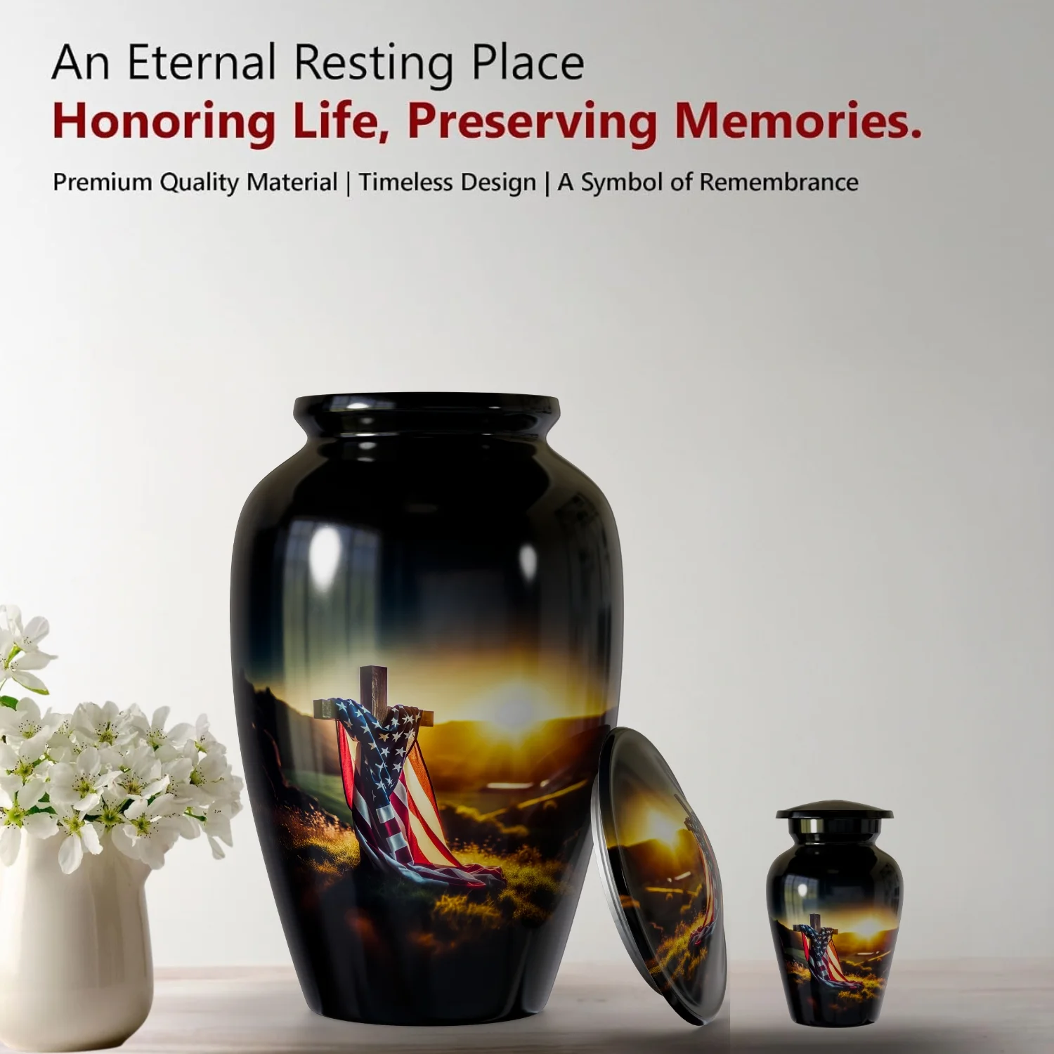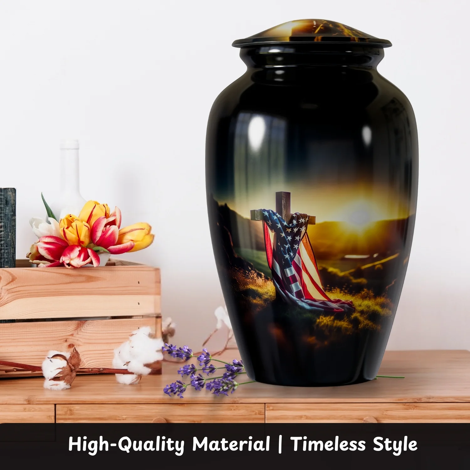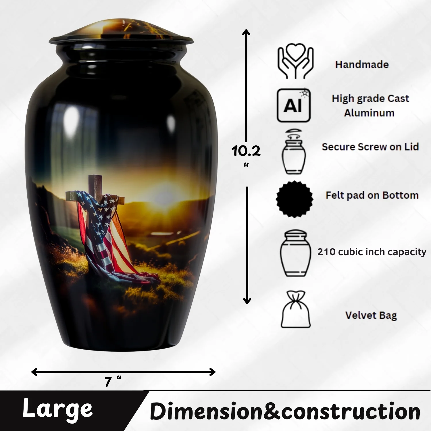 Be the first to review “Memorial Cross American Flag – Cremation Urn For Human Ashes”
